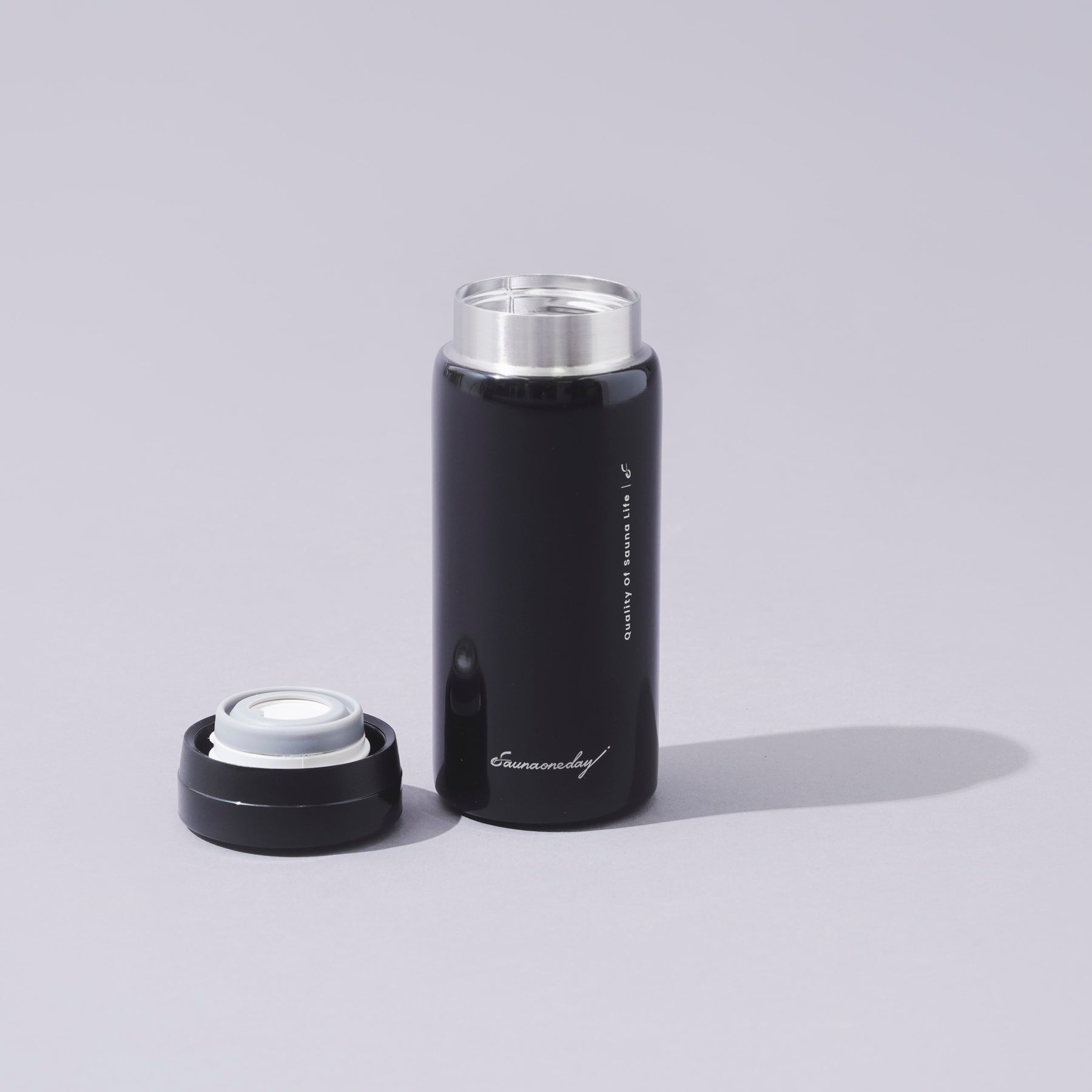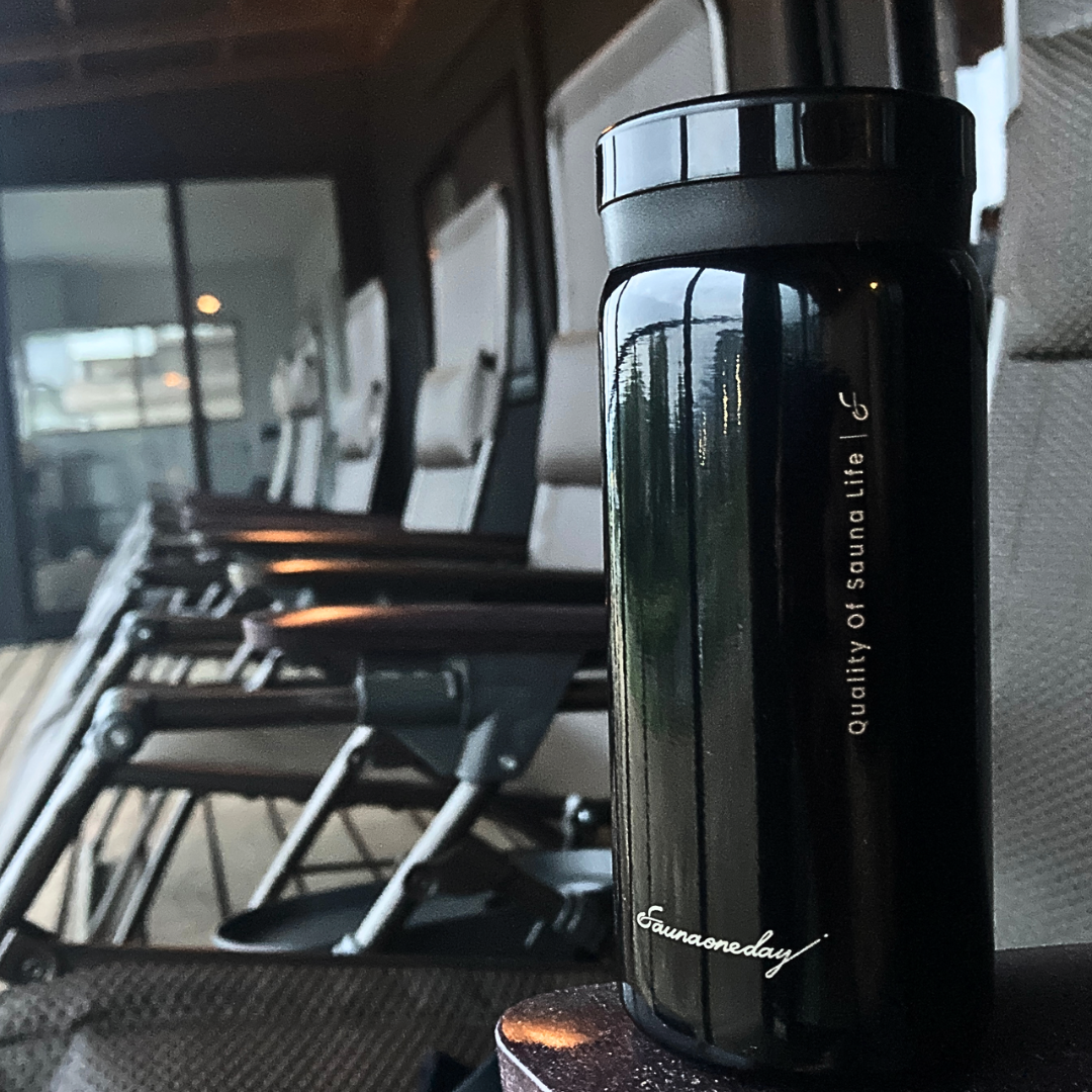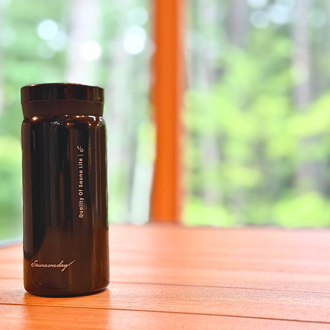 サウナ中の⽔分補給を考えた必要最⼩量のステンレスボトル。