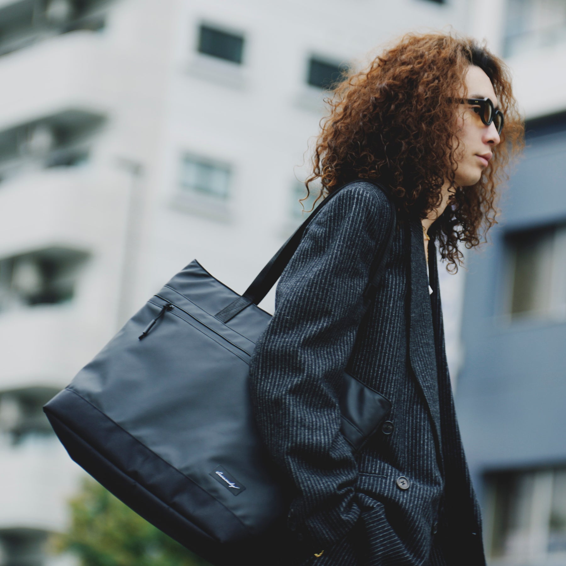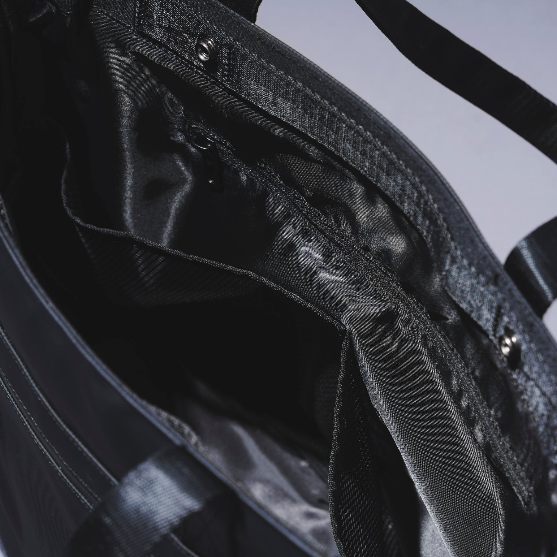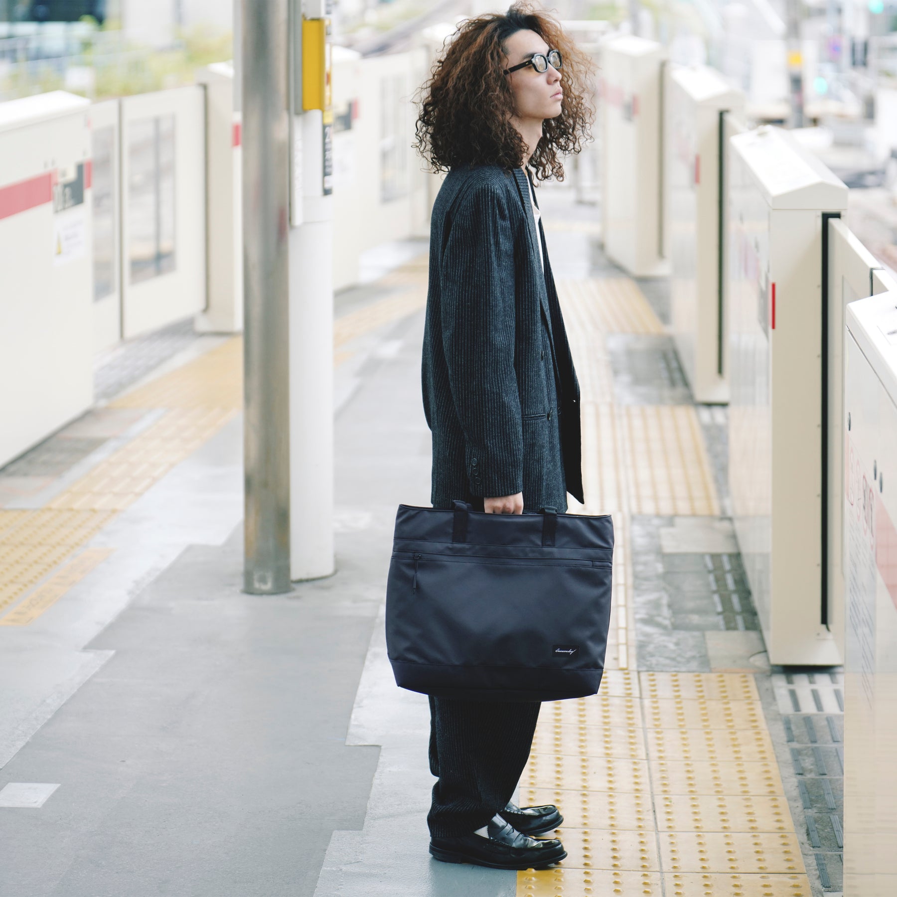 【背面】ロゴタグがなく、すっきりとしたデザイン。バッグ単体の重さは約670g。一般的に男性1kg前後、女性は800g前後までが快適に持てる重さと言われており、一般的なビジネスバッグの平均的な重さは1kg〜1.3kg程度。SAUNA LIFE BAGの軽量性は持ち運びのしやすさにも貢献している。 【PCポケット】ビジネストートバッグは数あれど16インチサイズのノートPCを持ち運べるタイプは意外と少ない。MAC BOOK PROなど、近年の高スペックで作業効率の高いノートPCは大型ディスプレーを採用する傾向にあるため、そのスペックのPCの収納を考慮した。 【ハンドル】長めに設定されたハンドルは、服を着込む冬場の寒い時期でも肩がけがしやすくなっている。幅が狭く厚みのある2重折り構造で、肩への掛け外しがスムーズに行えて耐久性も高い。 【ショートハンドル】手持ちのショートハンドルは内側に忍ばせ、見た目もスタイリッシュなデザインに仕上げた。ショートハンドルの内側にはSaunaonedayのタグラインである”Quality Of Sauna Life”の文字が隠されている。 【アウトルック】外側のメインファブリックには強度と高級感があり、撥水効果もあるナイロンオックスフォード900Dを採用。両サイドの大型のジッパーポケット内は水を弾くコーティング加工のポリエステル素材で、濡れたタオルや水着などを直接入れて持ち運ぶことができる。ジッパーラインも防水性のあるTPUでカバー。 【インナースペース】バッグ内側のメインスペースにはSPA CLUTCH BAGがすっぽり入る他、16インチノートPCが余裕で収まり、その他のガジェット類や着替えが収納できるメッシュポケットを2箇所備える。仕事用具だけではなく、サウナやジムで使うものや着替えも持ち運ぶことを考えた。 【セーフティーツール】時計やアクセサリーなどの小物が収納できるショートポケットや鍵が迷子にならない便利なキーリングも付いている。バッグの開閉はショートハンドルの部分のスナップボタンでサッとできる仕様。